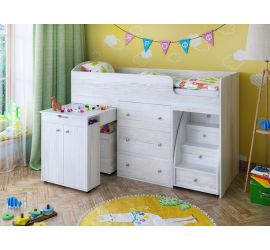 В таких кроватях спальное место располагается на втором ярусе. А вот снизу может располагаться место для творчества, рабочее место, игровая зона, шкаф, комод или полки. Для того, чтобы залезть на кровать, ребенку необходимо будет взобраться по специальной лестнице. Детская кровать-чердак полностью безопасна для малыша. Это объясняется ее устойчивостью, наличием бортика безопасности и его высотой, надежностью крепежа, удобной лестницей и высотой пространства между двумя ярусами.