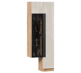 - Слева от тумбы ТВ –шкаф (общий размер 590х1800х391 мм) визуально разделенный на две части – непосредственно шкаф (350х1500х391 мм) с 3 полками ЛДСП за распашной дверью (открывается всегда налево) и секцию с открытыми полками (3 стеклополки (223х330 мм) и 1 полка из ЛДСП 32 мм (350х334 мм) – она на уровне полки под ТВ) и декоративным металлическим кронштейном. Расстояние между полками за распашной дверью варьируется от 327 до 351 мм., а в открытой части от 246 до 248 мм.