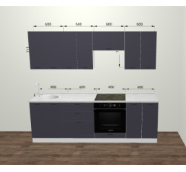 Размер кухонного гарнитура: Ширина 2400 мм. Высота 2132 мм. Глубина 600 мм. (с учетом столешницы)
