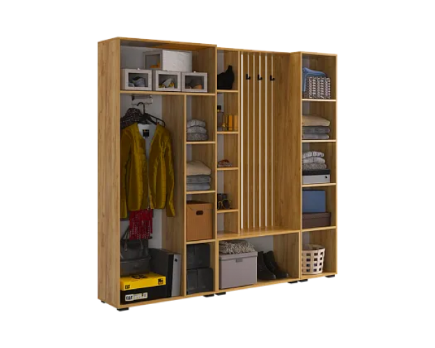 Прихожая Бери К9 дуб крафт золотой / белое дерево состоит из 9 модулей: