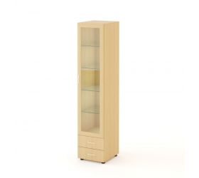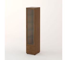 Пенал с двумя выдвижными ящиками. Модель отличается элегантностью, которую ей придает дверь со стеклянной вставкой. За дверью расположены полки, на которых можно разместить различные элементы декора.