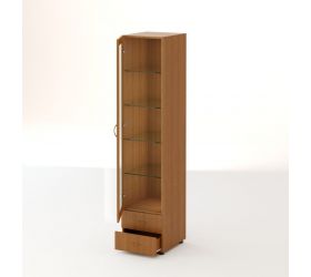 Пенал с двумя выдвижными ящиками. Модель отличается элегантностью, которую ей придает дверь со стеклянной вставкой. За дверью расположены полки, на которых можно разместить различные элементы декора.