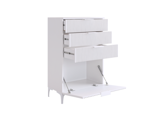 Комод «Зефир» — идеальное решение для детской и гостиной комнат. Он оснащён выкатными ящиками и откидной секцией, обеспечивая максимальный комфорт и удобство использования.