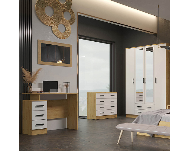 Туалетный стол Эко дуб вотан / белый - это не только удобное и практичное решение для хранения, но и стильный элемент декора, который станет украшением вашего дома.